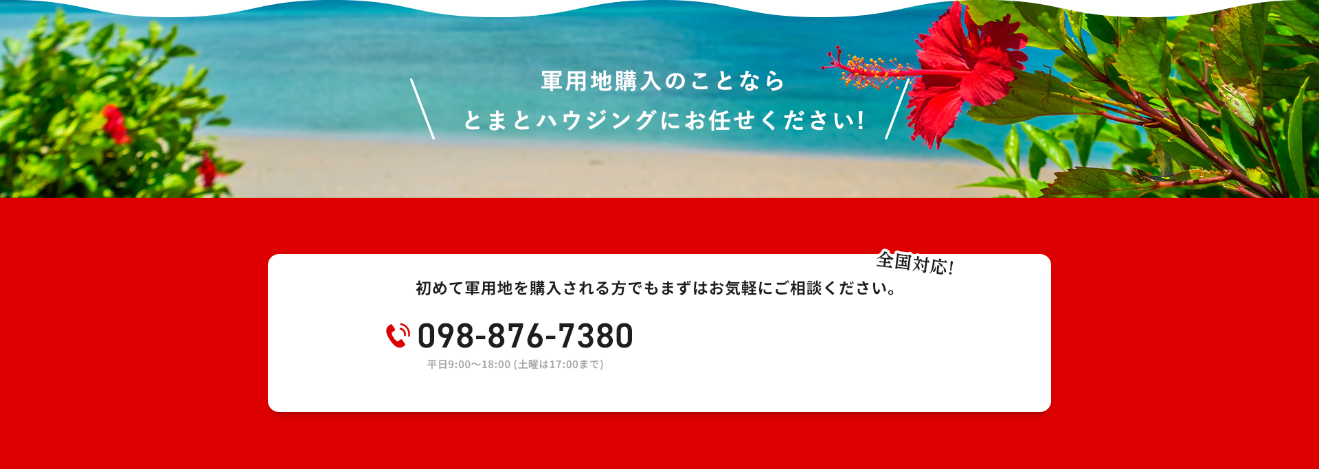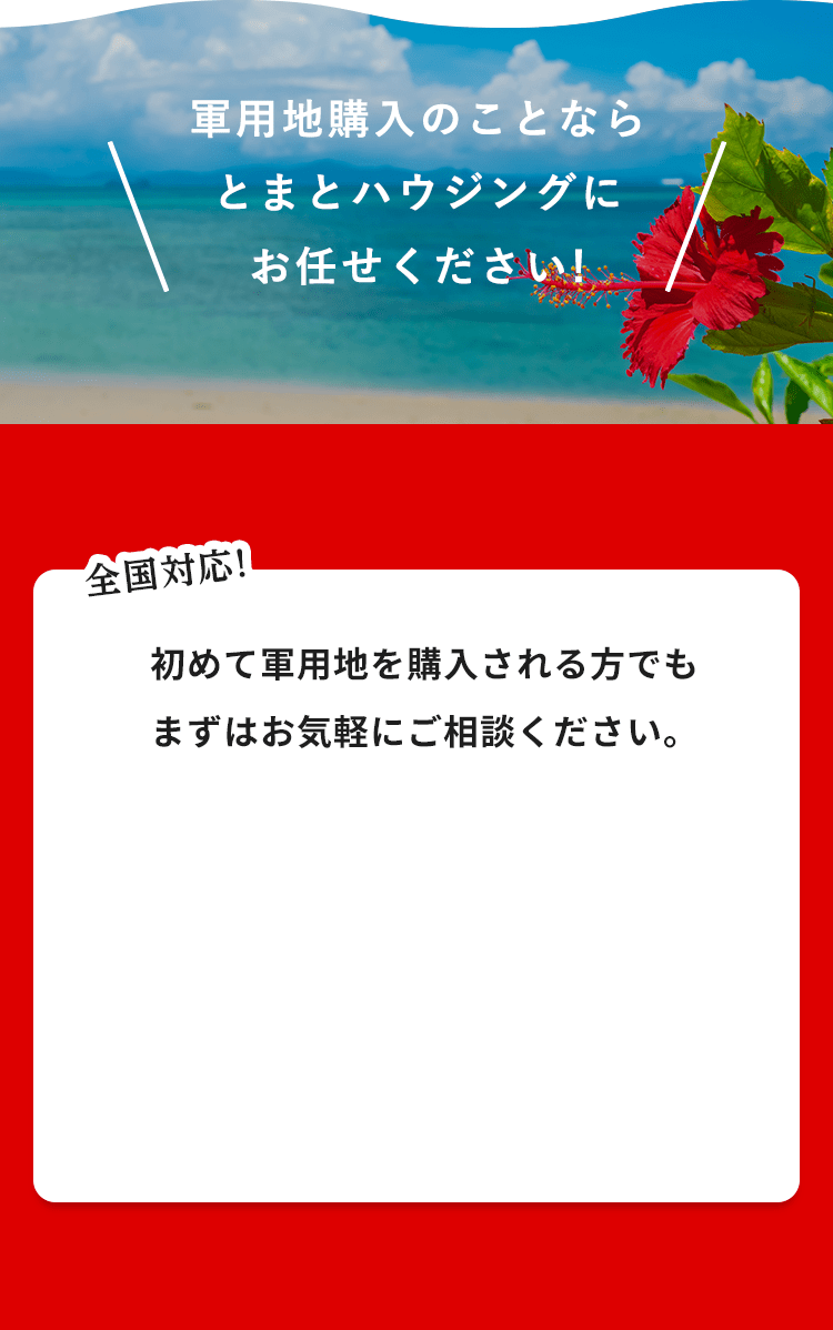 購入軍用地選び~お引渡しまで、経験豊富なとまとハウジング売買エージェントが、きめ細かくサポートいたします。沖縄県外にお住まいのお客様も、どうぞお気軽にご相談ください。